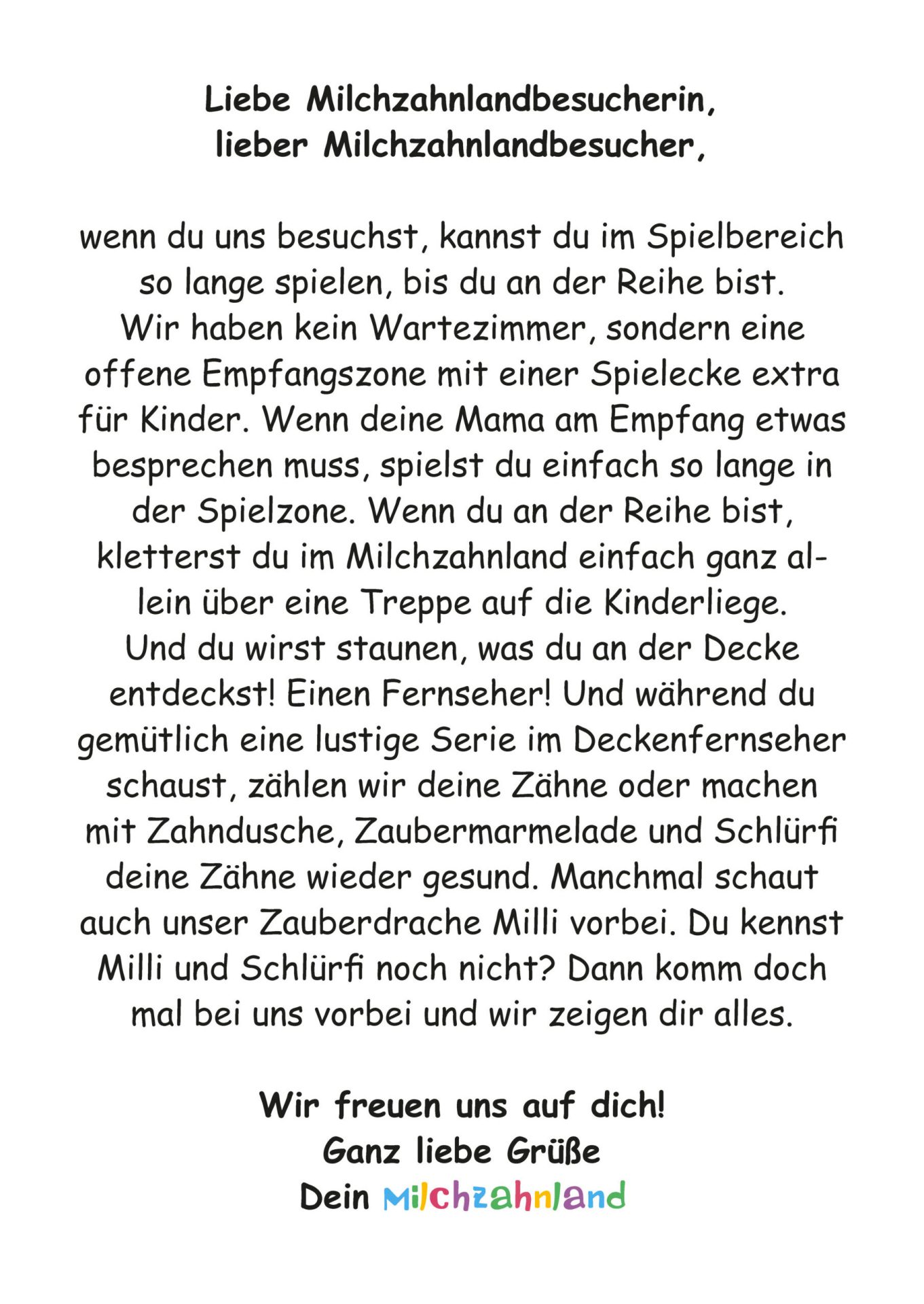 Lesen Sie Ihrem Kind einfach diesen Brief von uns vor und wecken Sie damit seine Neugier auf den Milchzahnlandbesuch: